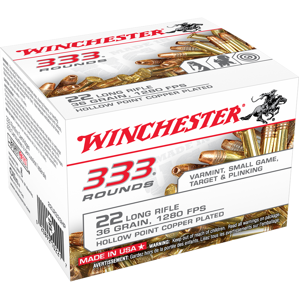 Winchester Ammo 22LR333HP USA 22 LR 36gr Copper Plated Hollow Point 333 Rounds