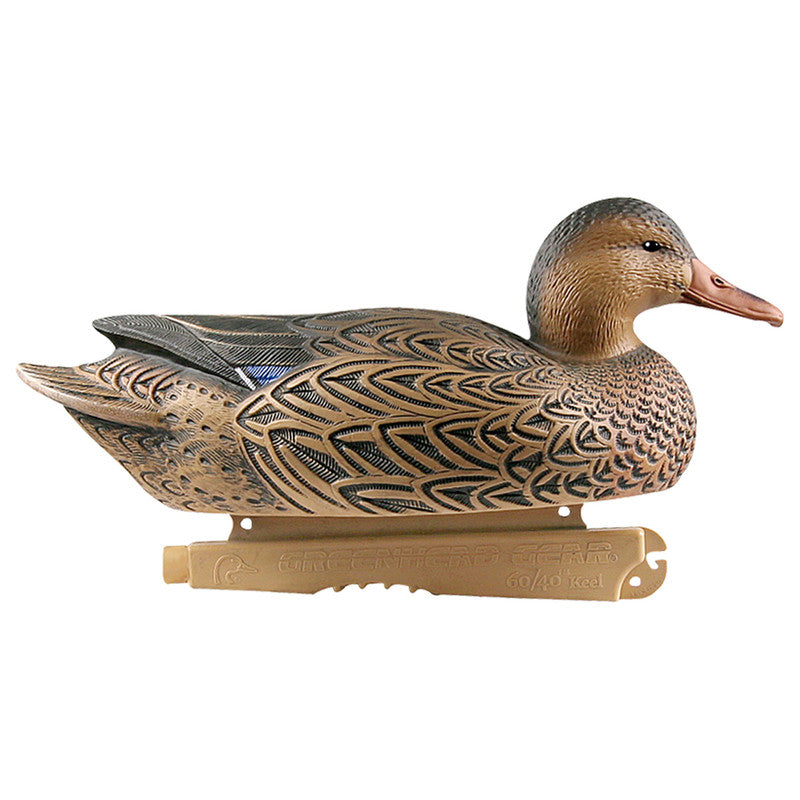 Life-sized proportions for the most realistic looking decoys in the industry. 60/40 keels. Includes 2 standard drakes, 2 low head drakes, 2 standard hens.