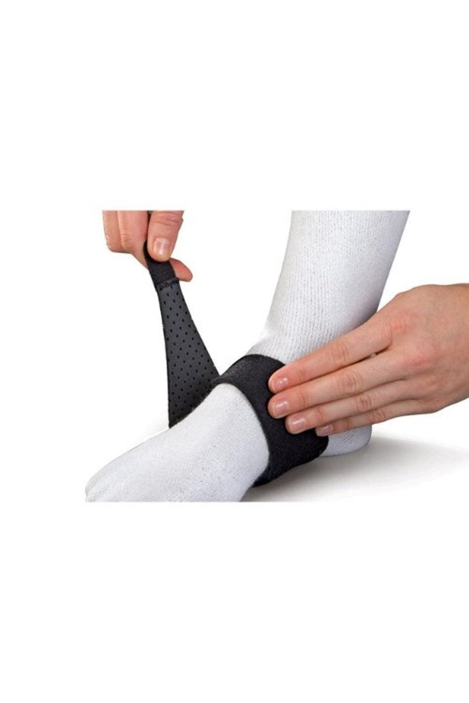 Supports the Plantar Fascia (the fibrous band of tissue that runs along the sole of the foot, from the heel bone to the base of the toes) and helps relieve soreness, inflammation, and discomfort in the arch and heel area. Fits left or right.