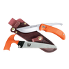 The SwingBlade-Pak is available with your choice of black or blaze-orange handles and comes complete with a quality leather belt sheath. The blaze-orange handle is easy to spot on the ground, saving valuable time in the field while preventing loss.