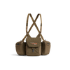 This harness is the ultimate utility piece for big game hunters. We took a systems-based approach to the issue of carrying multiple at-hand essentials into the field. The harness features a silent secure magnetic one-handed front flap for binos. Removable, modular side pockets keep rangefinders, GPS, cell phone and other accessories at the ready for quick quiet access. Additional elastic pockets deliver storage for calls or a wind gauge and the internal lens cloth keeps your glass clean and sharp. The Mountain Optics Harness is rounded out with a brushed polyester face fabric for close in silent stalks.