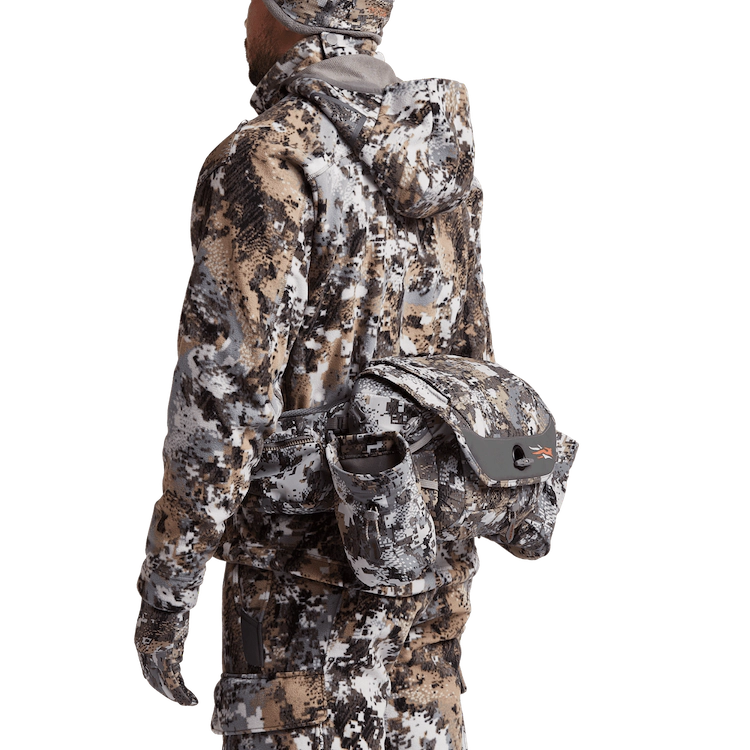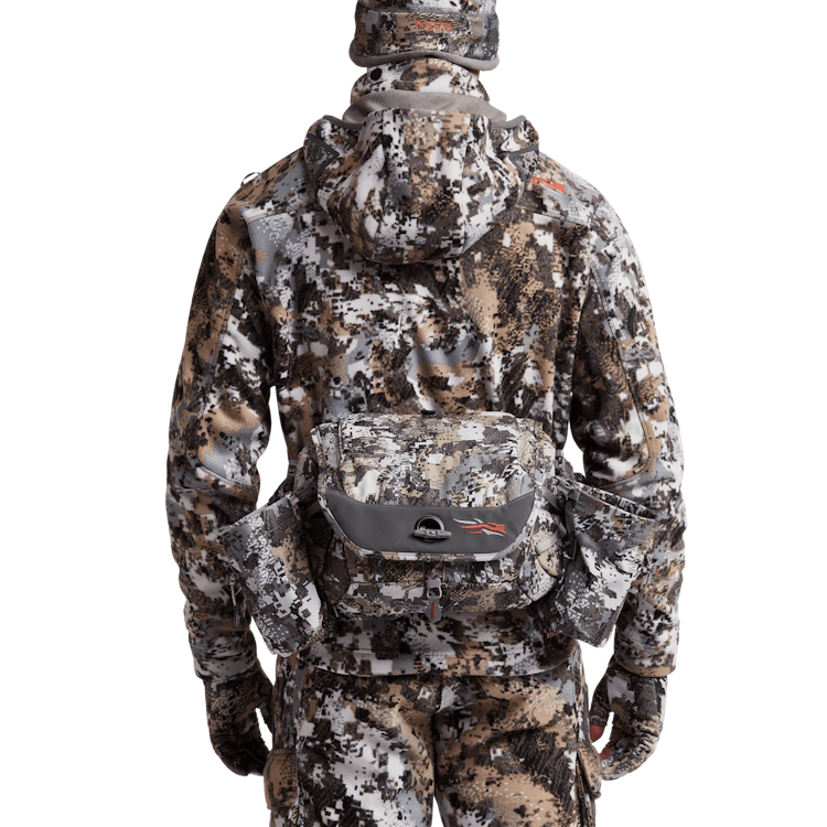 Low-profile efficiency for the minimalist hunter in a hip pack with a removable Sitka Gear jacket and bib shoulder harness system.