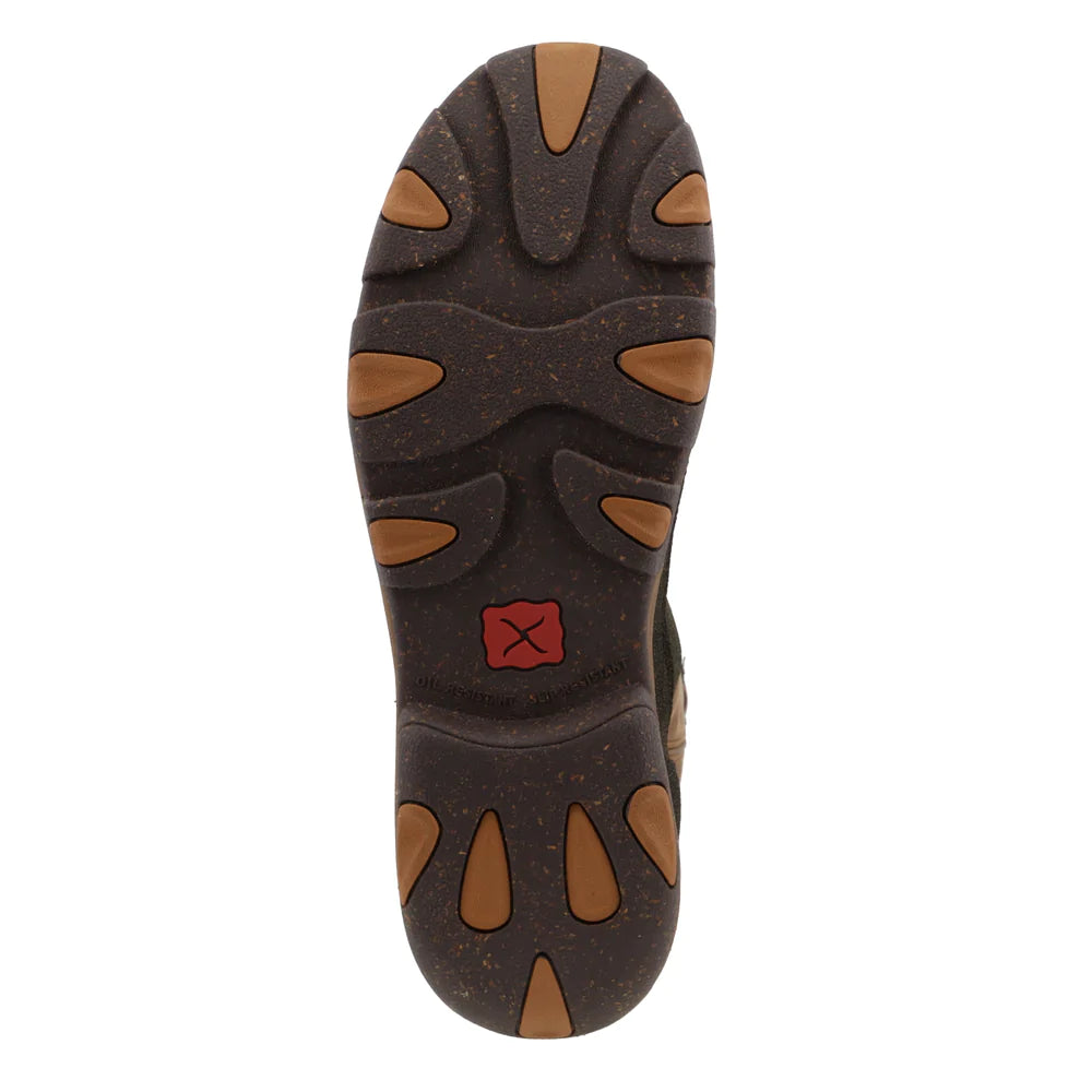 The Men's Waterproof 11" Pull-On Hiker Boot is handcrafted featuring duraTWX® hybrid performance leather accompanied by full-grain leather, breathable waterproof lining, and an air-mesh lined shaft. The Twisted X® CellSole® comfort technology, integrated into the footbed, provides all day cushion and support, while the full-length molded EVA midsole provides a layer of shock absorption for the entire foot. Paired up with a slip-resistant molded rubber outsole that is blended with eco-friendly rice husks, making a one-of-a-kind, increasingly sustainable outsole, for traction in challenging conditions. To improve the footwear lifespan, this outsole has an integrated toe cap and heel kick. Features blend to produce a versatile boot that has increased functionality compared to other casual footwear.